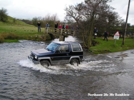 A car passes through a ford...